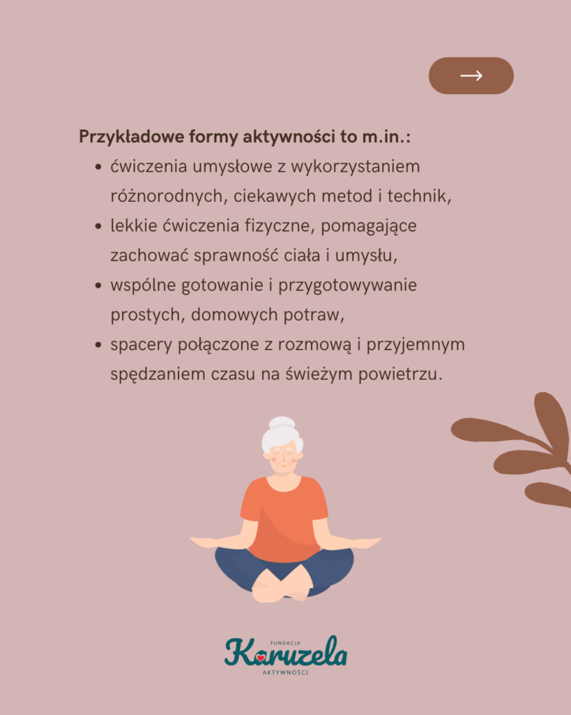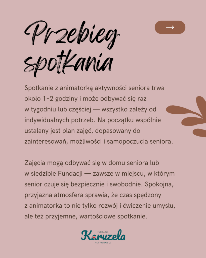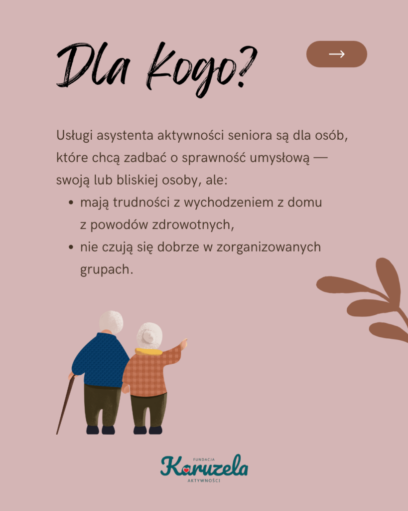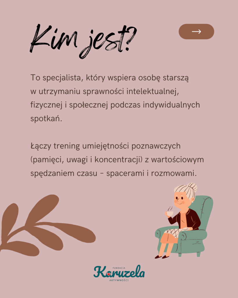 Chcemy przenieść część działań Karuzeli prosto do domów seniorów — Państwa lub Państwa bliskich. W spokojnej, przyjaznej atmosferze, w tempie dostosowanym do seniora, zadbamy o aktywność umysłową i stymulację intelektualną. W tym pomóc ma asystent aktywności seniora.