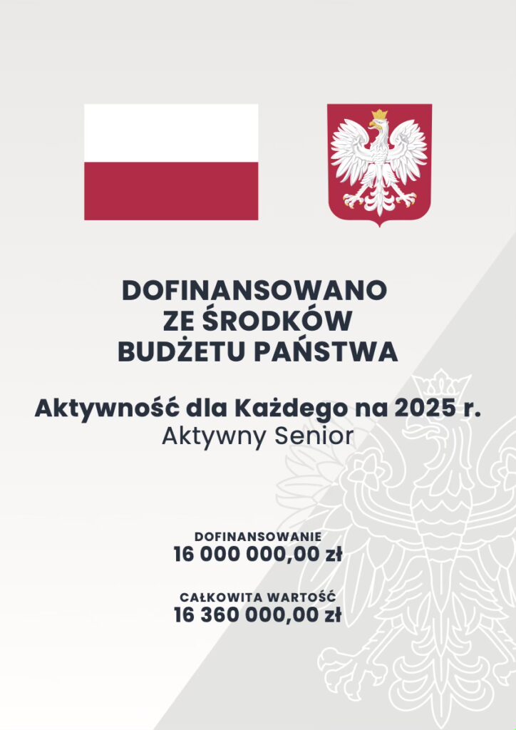 Projekt dofinansowany jest ze środków Ministerstwa Sportu i Turystyki oraz Fundacji LOTTO im. H. Konopackiej w ramach konkursu „Aktywny Senior 2025”.