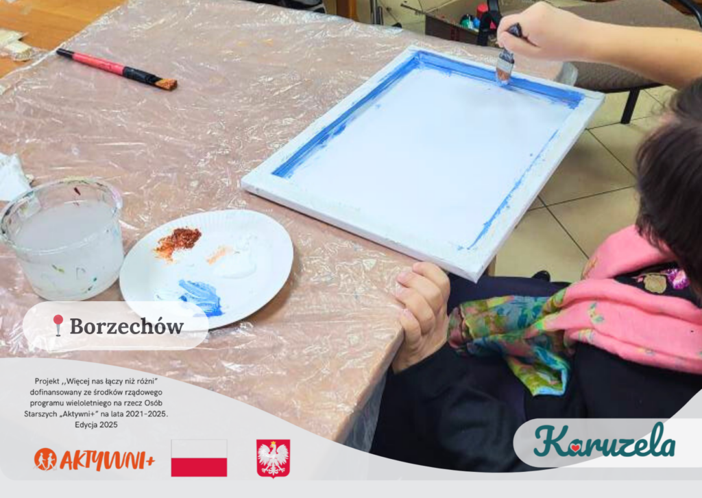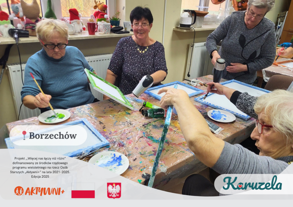W spotkaniu wzięły udział również młodsze osoby, wcześniej nieuczestniczące w projekcie, co wzmocniło jego międzypokoleniowy charakter. Warsztaty poprowadziła pani Elżbieta Dudzińska – artystka-emerytka z sąsiedniej gminy. Efektem jest 20 unikatowych prac, które stały się pamiątką wspólnego, twórczego czasu.