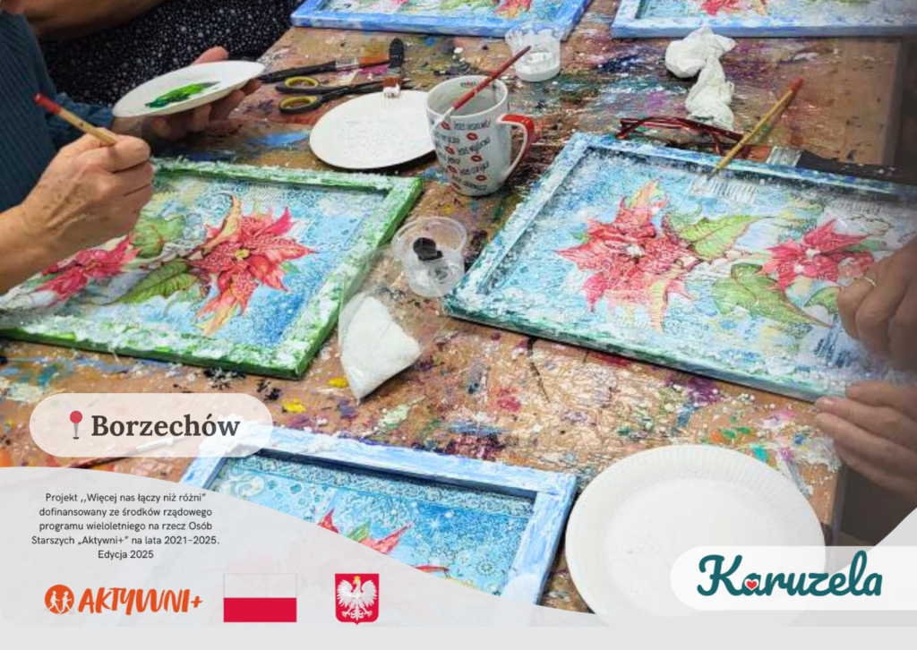 W Borzechowie zrealizowano inicjatywę „Świąteczne inspiracje” – warsztaty rękodzielnicze, podczas których powstały obrazy wykonane techniką mix-media o tematyce świątecznej.